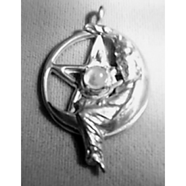 1" wide Moon Goddess Pentagram, with choice of metals & gemstones