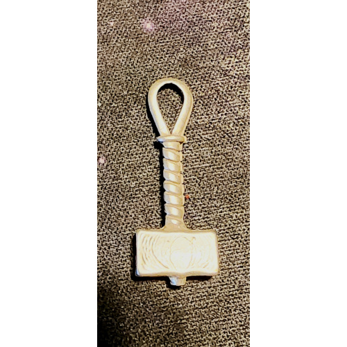 'wrist' loop on this rustic style hammer creates a large bail to accomodate most chain sizes. aprox 1" long