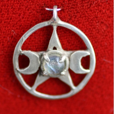 1" triple moon symbol pentagram, in choice of metals/gemstones (default is sterling silver for this item, due to the gemstone inclusion) call for availability of other stones