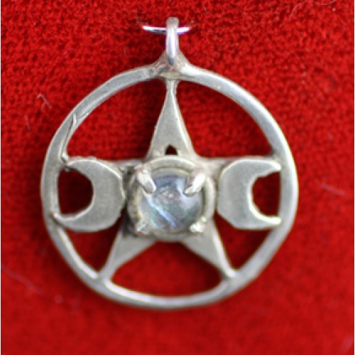 Triple Moon pentagram with gemstone