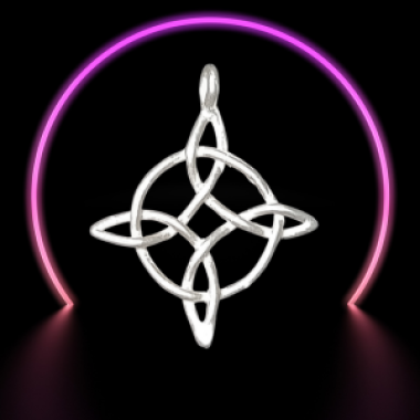 traditional witches' knot design, handwoven sterling silver, just under 1.75" top to bottom